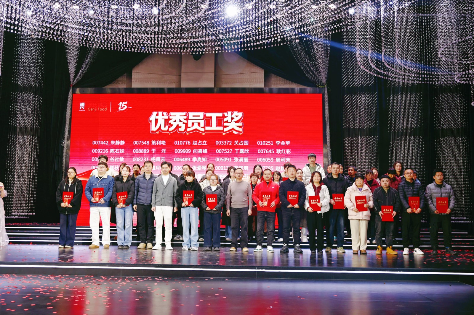 盛典现场对公司新锐奖、优 秀员工奖、优 秀管理干部奖、优 秀团队奖等多个奖项进行表彰,为3年、5年、10年乃至15年资 深员工颁发服务奖,品控部阳述东经理获颁专属的十五年服务奖。每一份荣誉都是对新香蕉视频在线观看人实干与坚守的肯定。