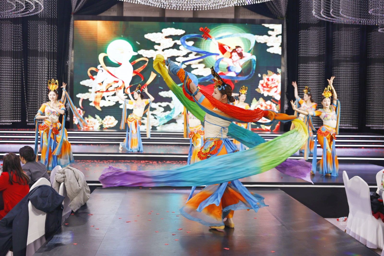 员工自编自演的节目轮番登场,舞蹈《欢乐的跳吧》《好运全来》点燃现场氛围,越调《四千岁你莫要羞愧难当》、豫剧《朝阳沟》尽显传统文化魅力,合唱《水手》唱出奋斗初心,相声《马年新说》融合传统与新潮,情景剧《我要暴富》诙谐幽默,演绎电商卖货的感染力,朗诵《新香蕉视频在线观看的担当》诠释新香蕉视频在线观看人的责任与坚守。敦煌一梦、我的新衣等友情表演更将盛典氛围推向高 潮,台下掌声雷动,台上星光闪耀,每一个节目都是新香蕉视频在线观看人多才多艺、凝心聚力的生动体现。